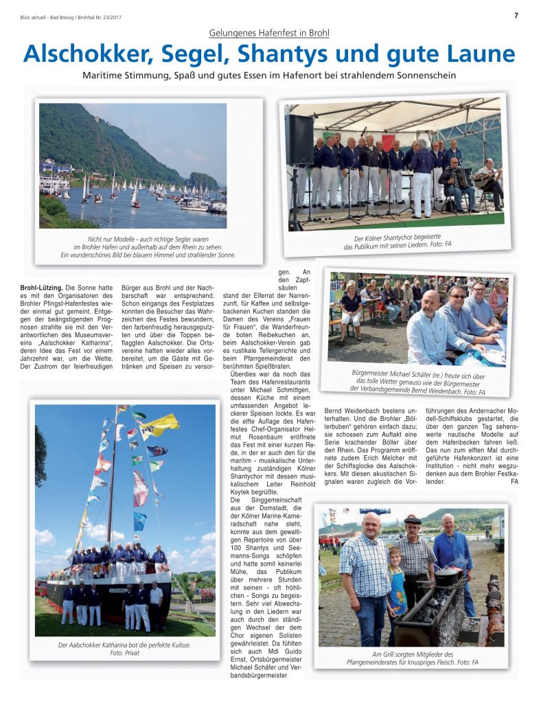 Bericht: Blick aktuell- Bad Breisig/Brohltal 17/2017 Fotos: FA