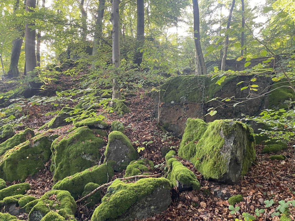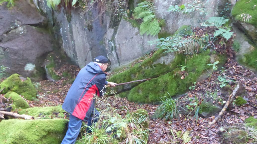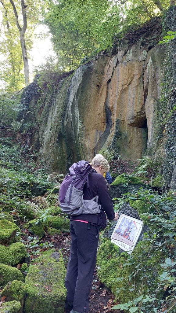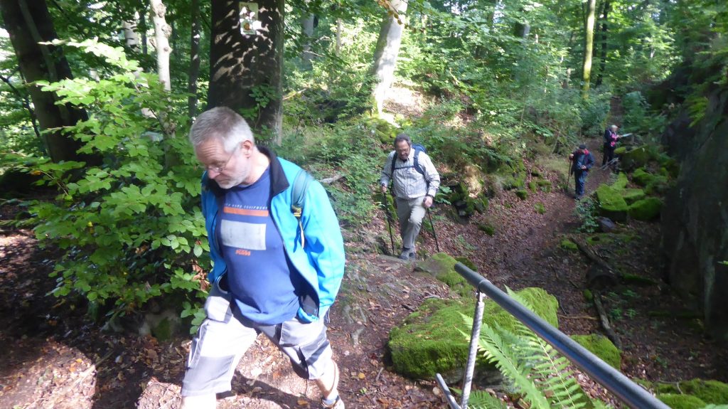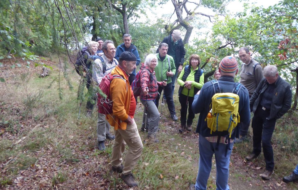 Auch im biologischen Teil gab es Interessantes zu entdecken und zu hören. Dr. Thomas Wagner erläuterte nicht nur die vorhandene Vegetation am Wegesrand, sondern ging in dieser Führung auch auf die Auswirkungen durch die Klimaveränderung ein. Einleuchtend schilderte er die Symbiosen zwischen Bäumen, Pflanzen und der Tier- und Insektenwelt. Am Beispiel des Fichtensterbens verdeutlichte er, dass damit das Aussterben der Tannenmeise und des Wintergoldhähnchens einhergehen. Diese negative Sichtweise bedeutet andererseits, dass durch die zukünftige geänderte Forstwirtschaft andere Baumarten wieder zu mehr Artenvielfalt führen werden.